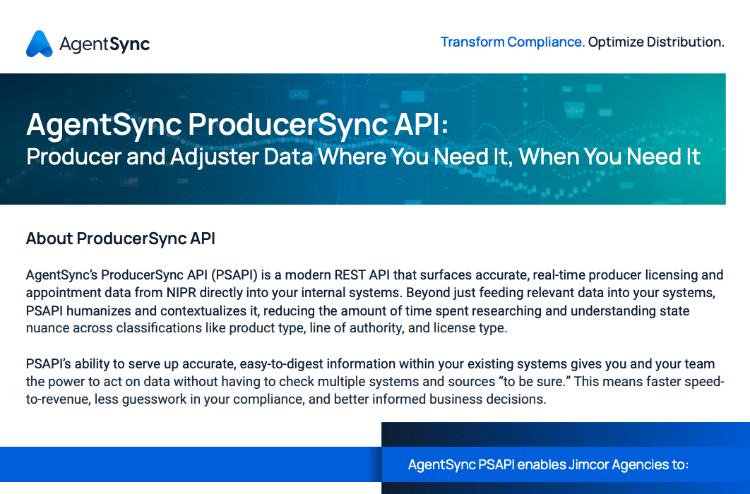 At AgentSync, we can help you lock down your adjusters’ licensing and compliance requirements so you can reduce churn and increase your team and customer satisfaction. See how; check out our Solutions page.
