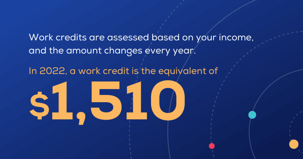 Most Americans fully qualify as long as they’ve worked for 40 “work credits” … work credits are assessed based on your income, and the amount changes every year. In 2022, a work credit is the equivalent of $1,510.
