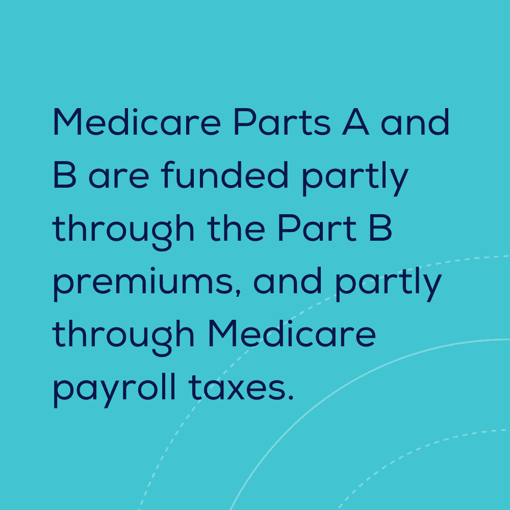 Medicare Parts A and B are funded partly through the Part B premiums, and partly through Medicare payroll taxes. The same Federal Insurance Contributions Act (FICA) taxes you’ve been paying since that first taste of sweet, sweet taxpayer income, the same FICA contributions that run Social Security, also fund Medicare.