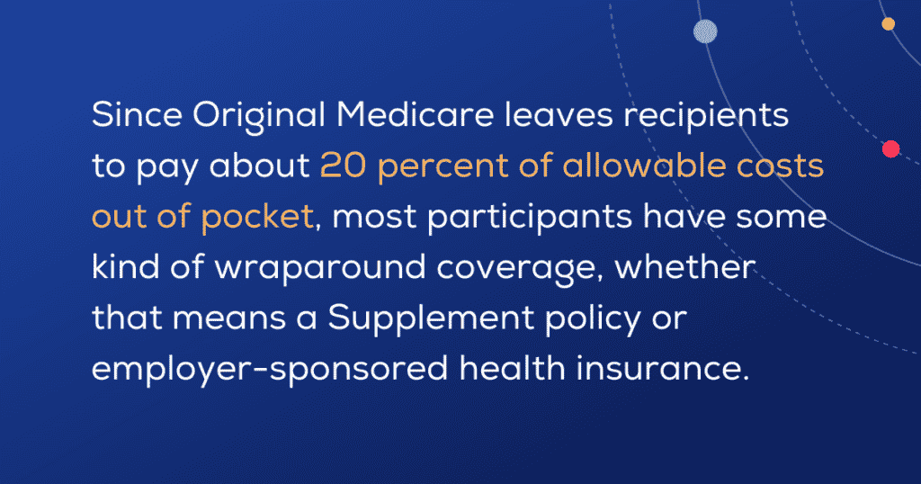 Since Original Medicare leaves recipients to pay about 20 percent of allowable costs out of pocket, most participants have some kind of wraparound coverage, whether that means a Supplement policy or employer-sponsored health insurance. Medicare Part C, or Advantage, participants will not have Supplement plans.