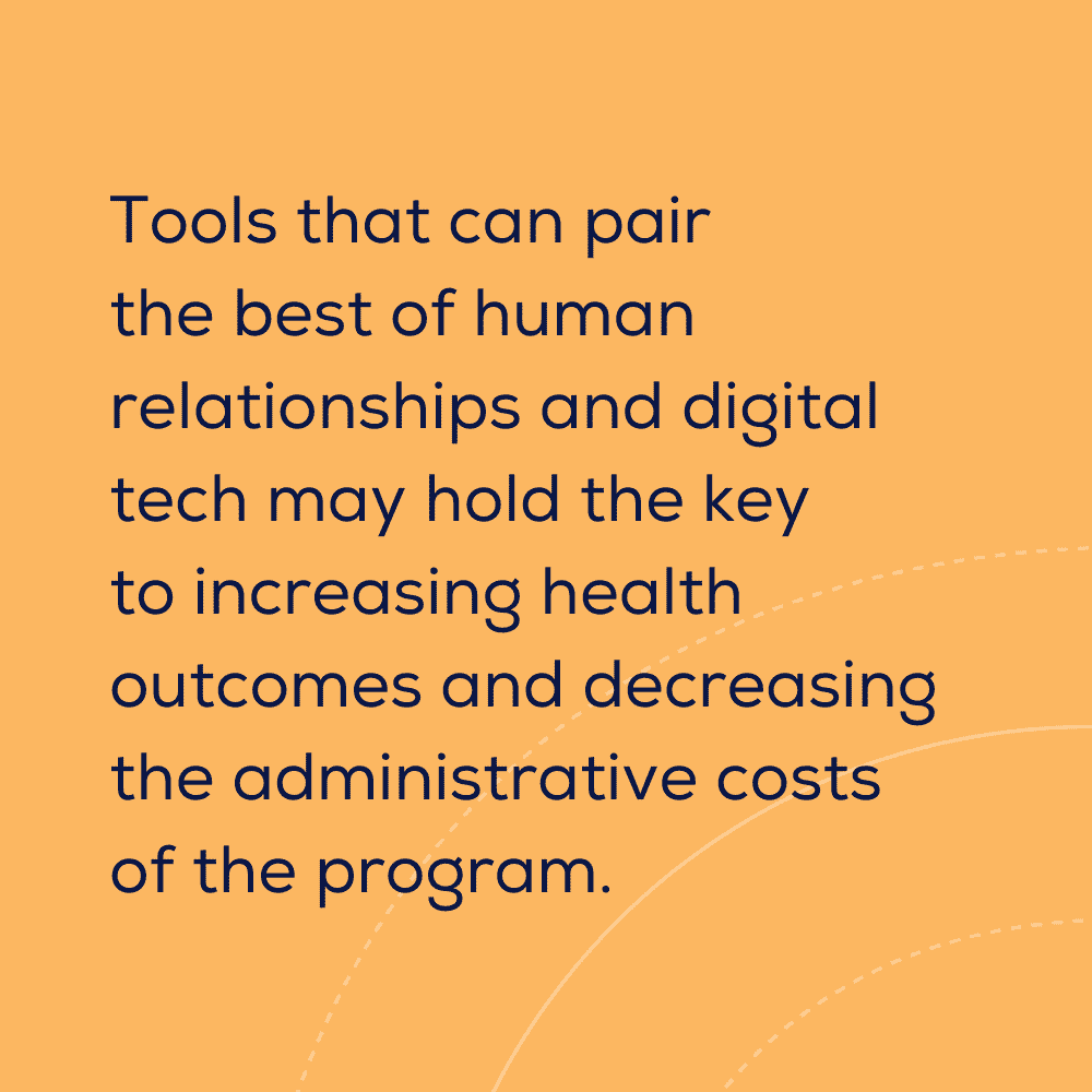Digital adoption also holds transformative promise; tools that can pair the best of human relationships and digital tech may hold the key to increasing health outcomes and decreasing the administrative costs of the program.
